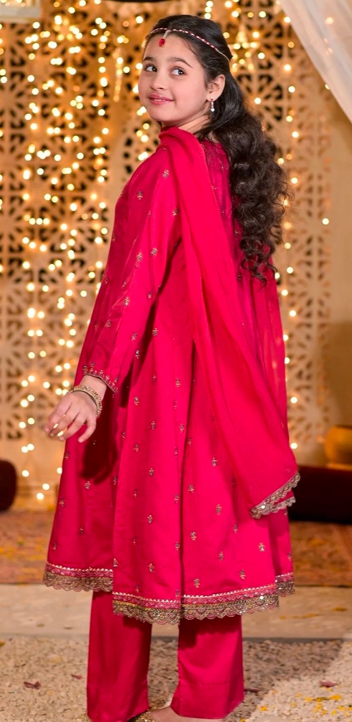 Look like a vision of perfection in this garment from the latest collection of RAFIA. Beautifully designed dress enhanced with embroidery with thread, tilla and sequins