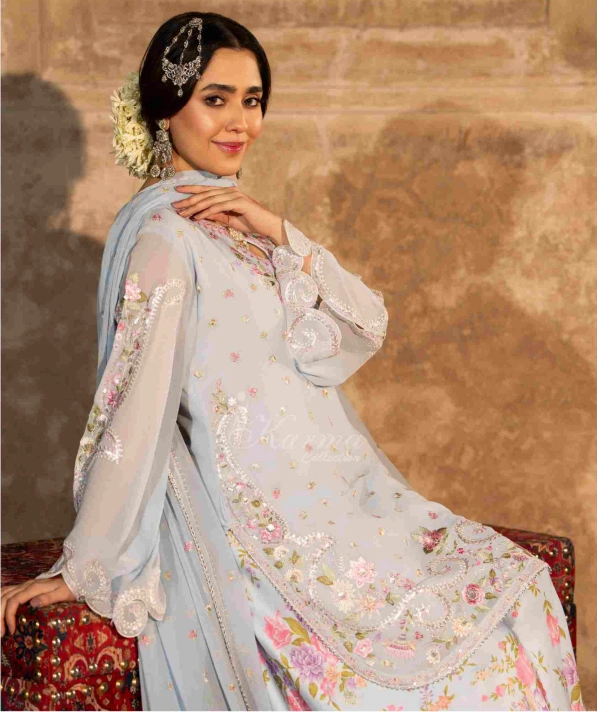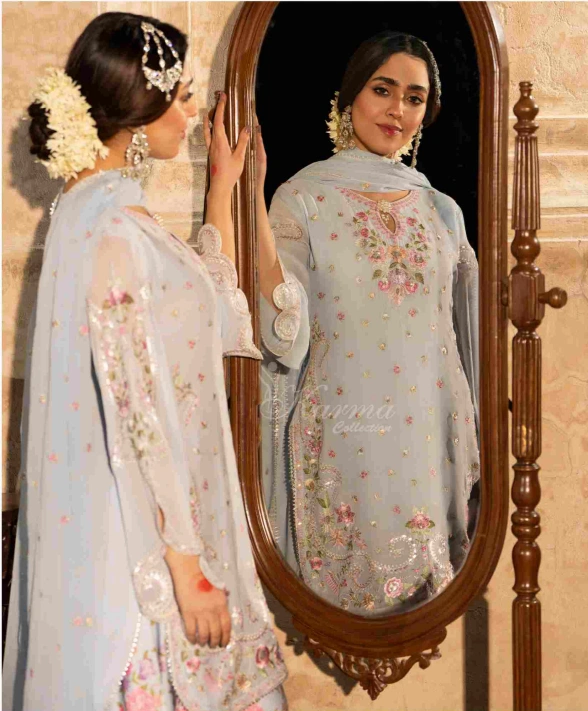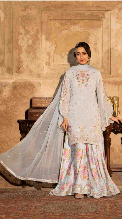 Georgette Shirt with Thread work Embroidery and Cut work Sleeves
