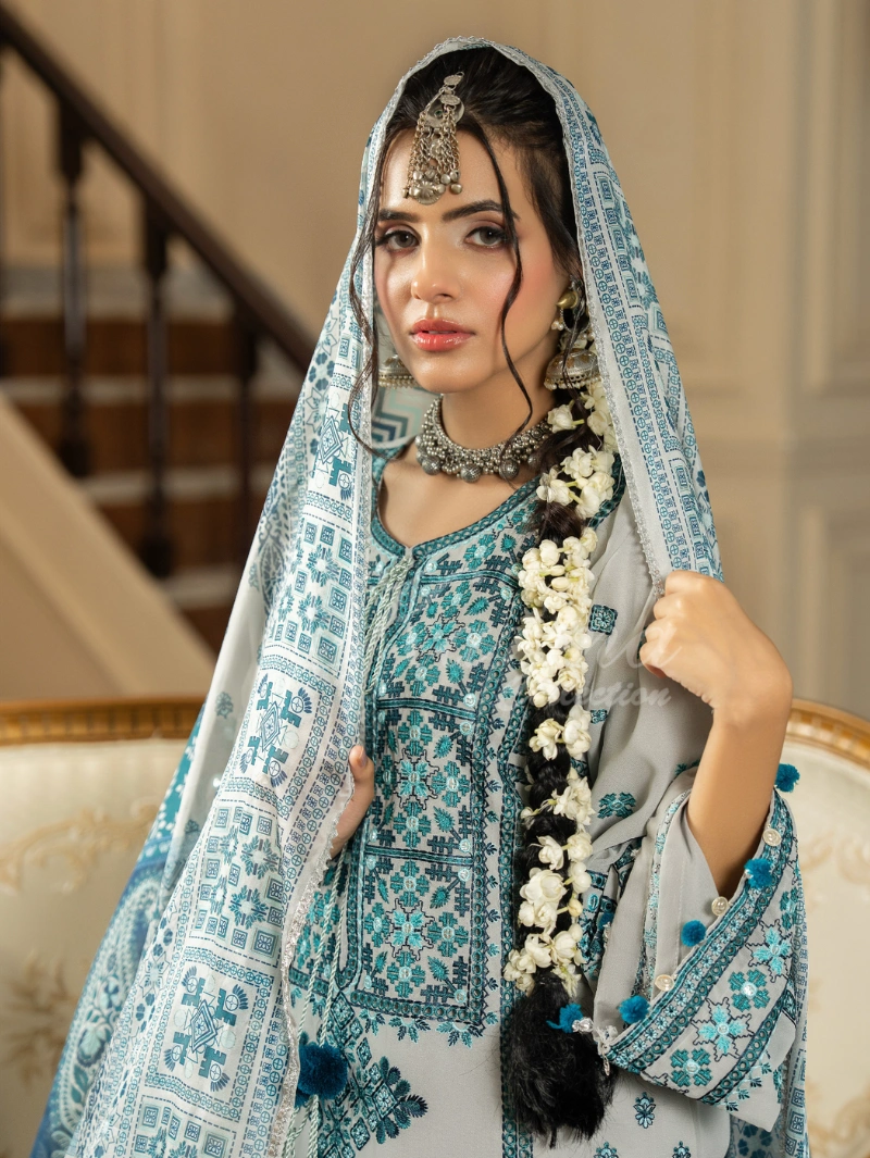 Dupatta: Printed Dupatta with all around Silver Gotta Lace