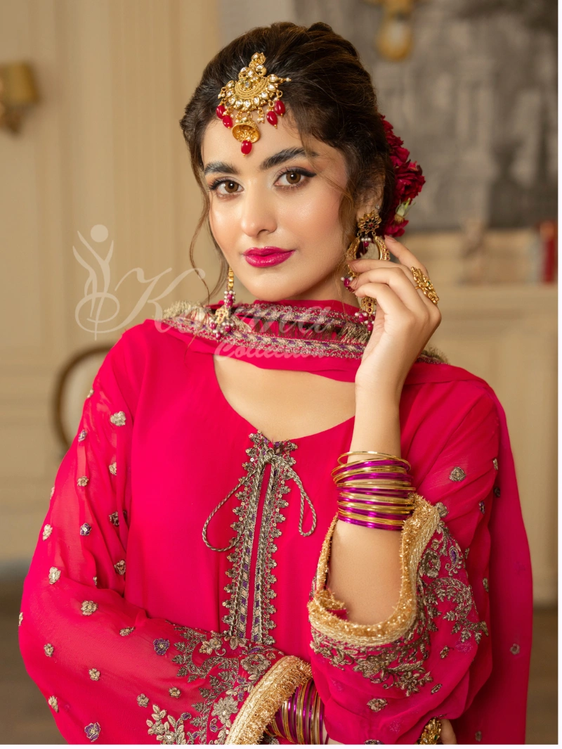 Dupatta: Crinkle Chiffon Dupatta with Cross Stitch Embroidery Lace all over