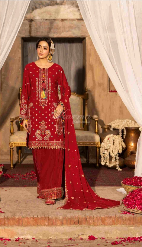 Georgette Chiffon Shirt with Multi Thread Embroidery and Tussel work on