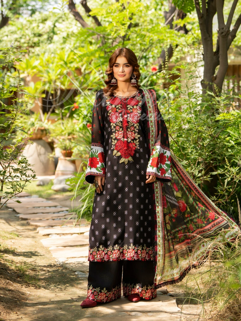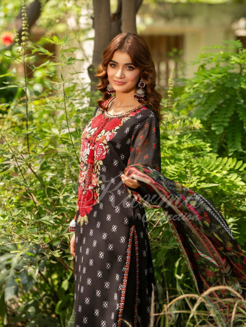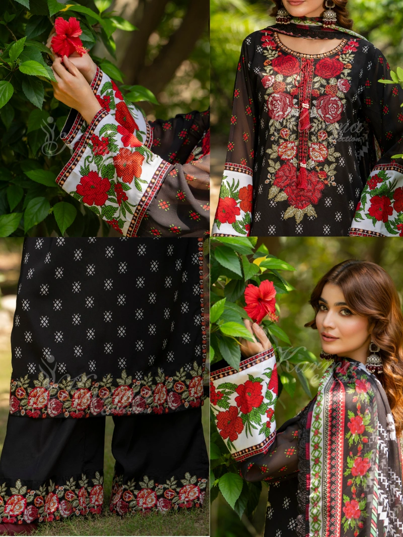 Shirt: Printed Long Georgette Shirt with Cross Stitch Embroidery