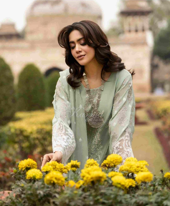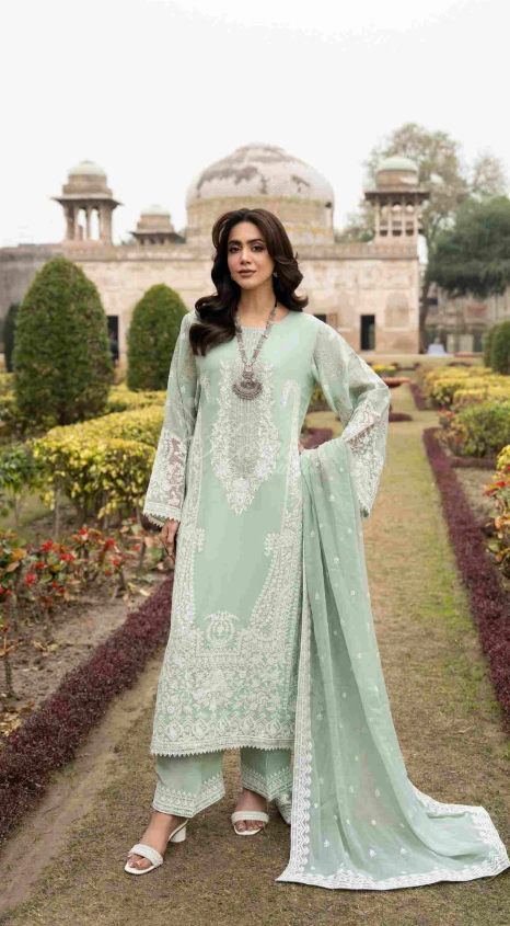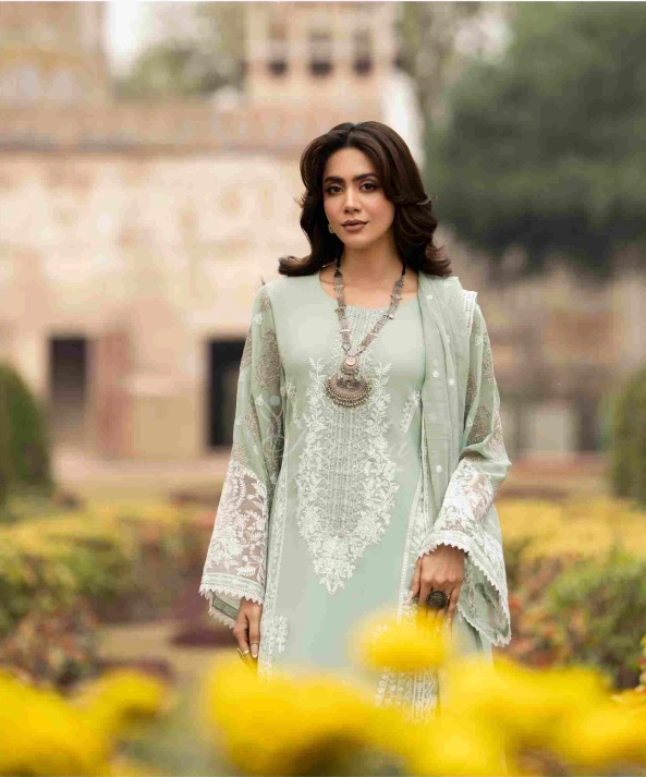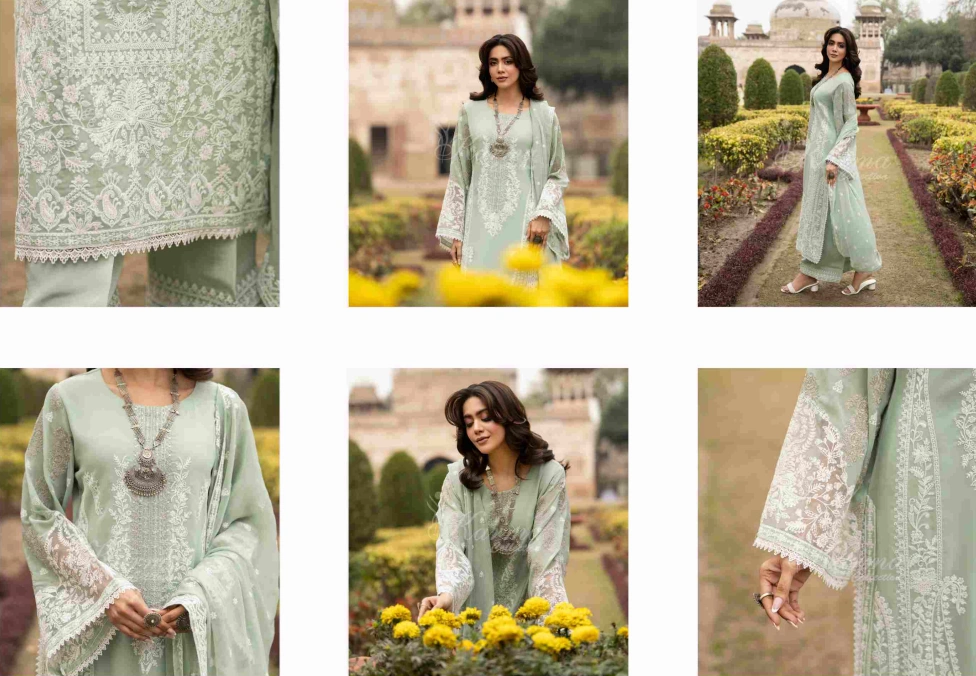 Georgette Long Shirt with Matte Thread Embroidery and Lace on Chalk