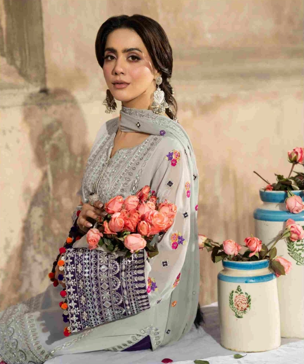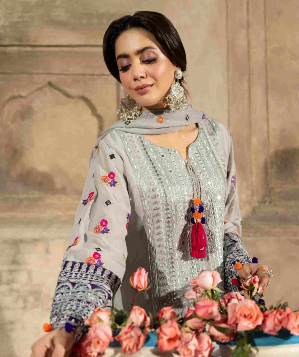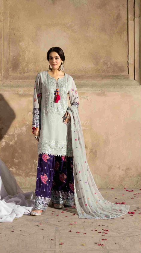 Georgette Shirt with Panni, Sequins, Tilla and Thread work Embroidery (Tussels on