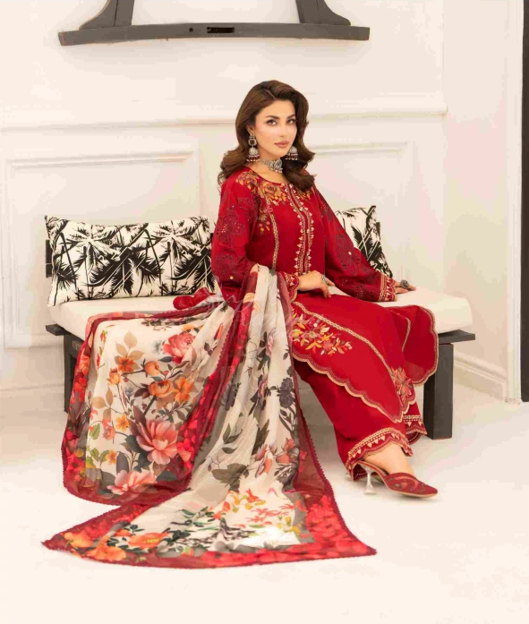 Dupatta: Printed Swiss Lawn Dupatta with all around Lace