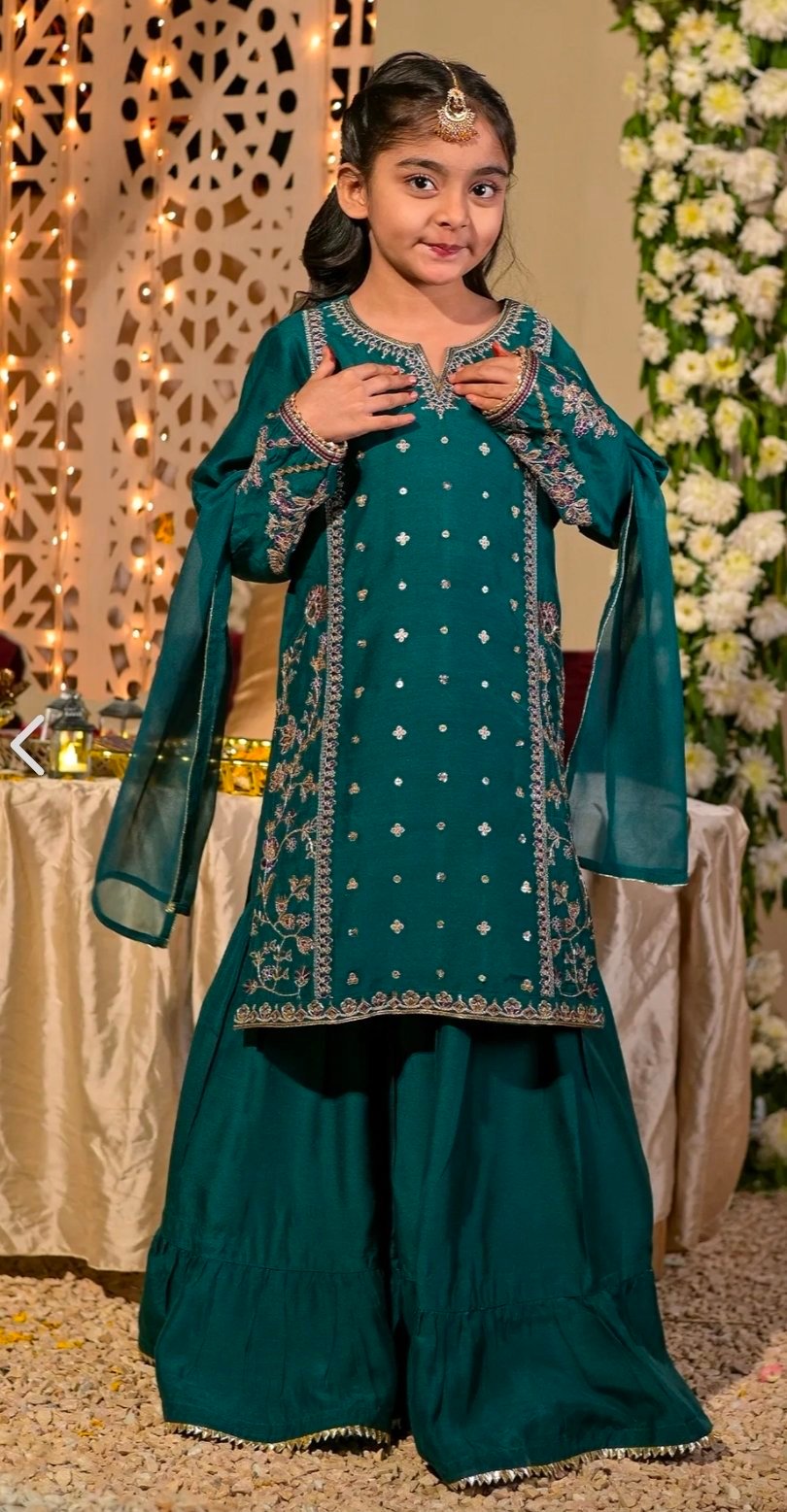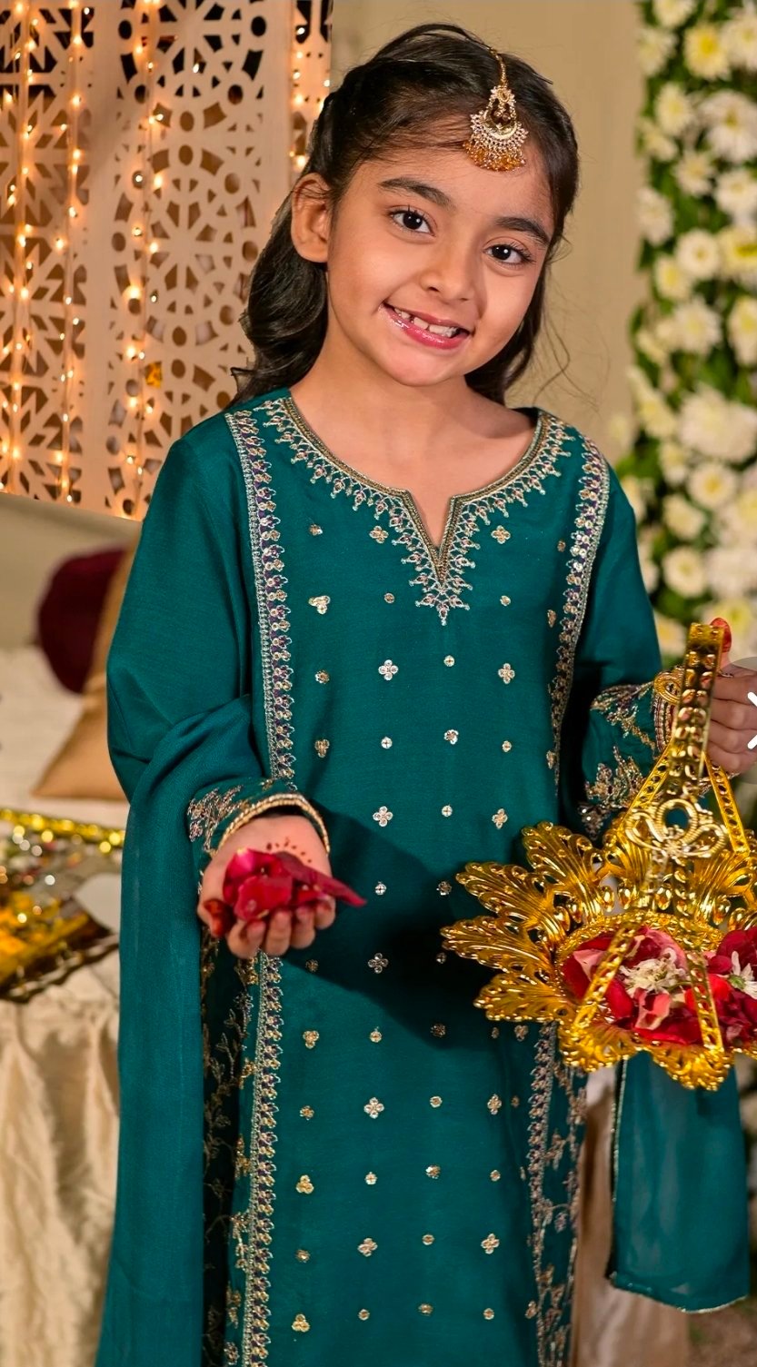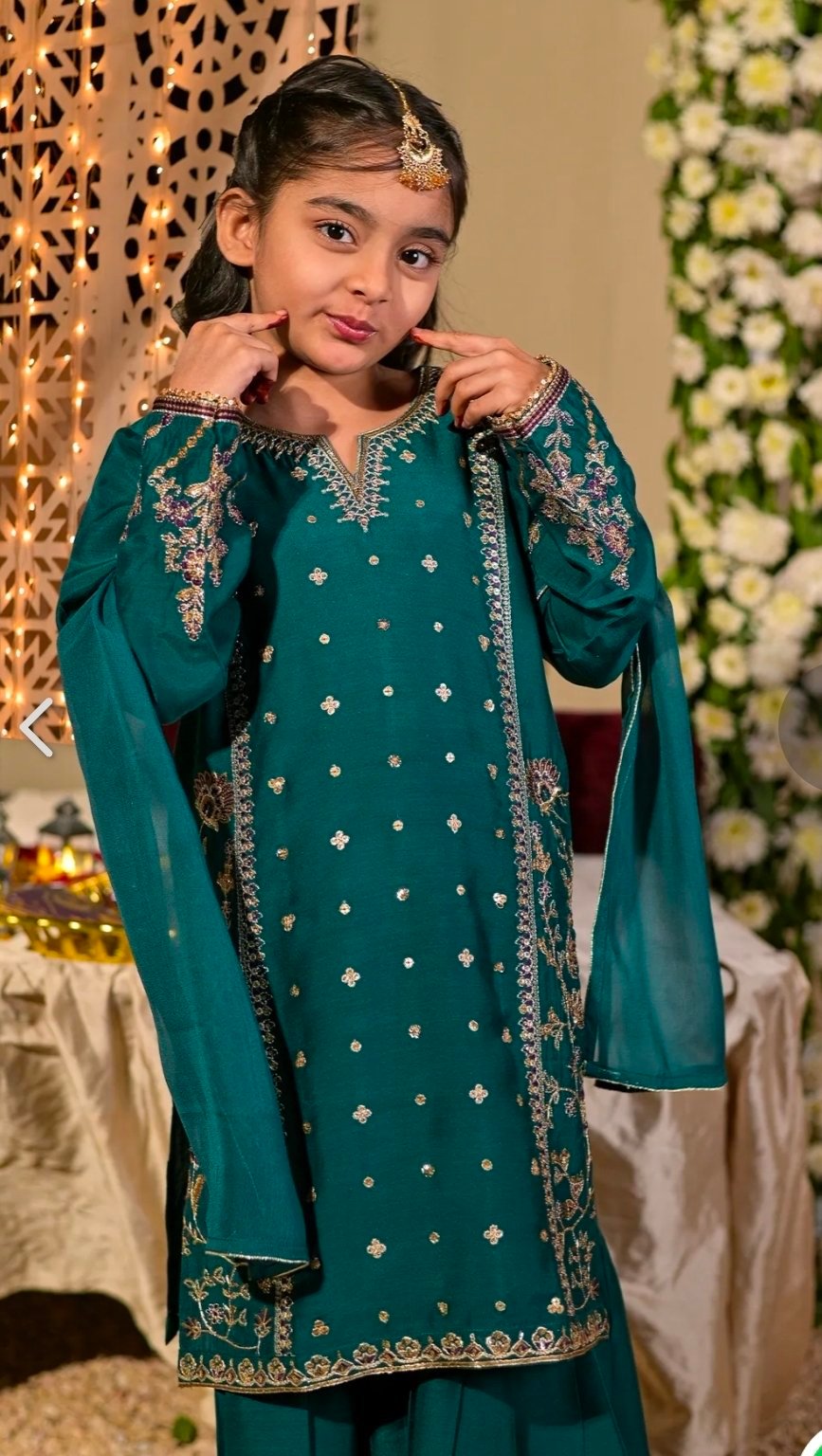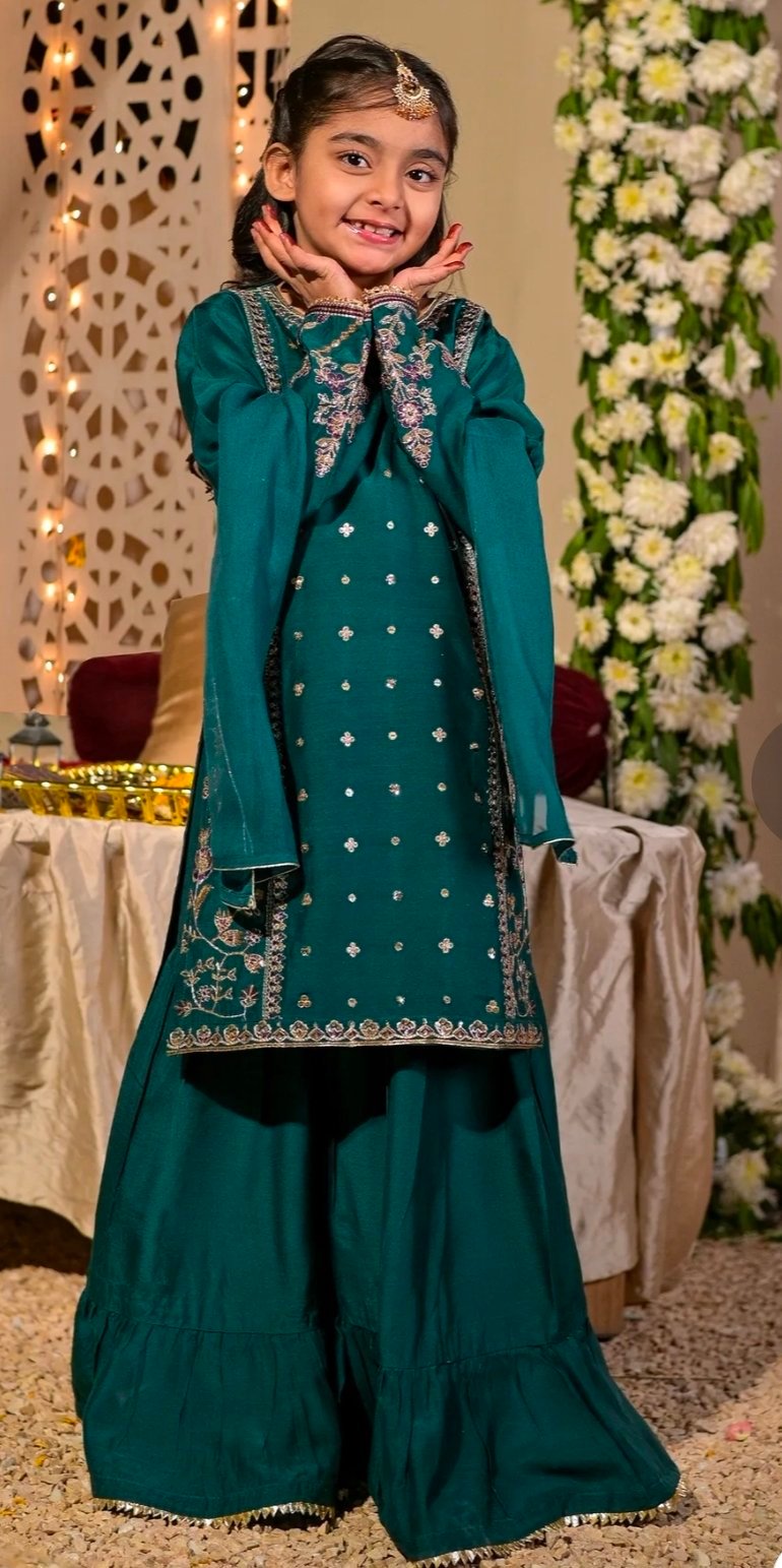Look like a vision of perfection in this garment from the latest collection of RAFIA. Beautifully designed dress enhanced with embroidery with thread, tilla and sequins